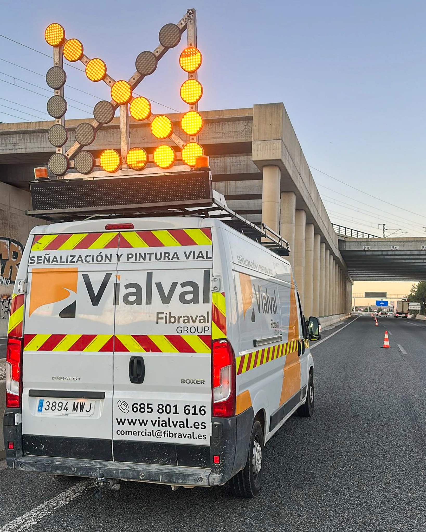 Vialval es una marca del Grupo Fibraval especializada en cuatro divisiones: señalización y pintura vial, instalación de biondas y guardarraíles, montaje de pórticos y señalización vertical, y servicio de albañilería.
